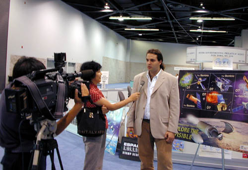 De plus la poste chinoise étant aussi présente, son représentant officiel fut séduit par le coup de "souris" des éditions Lollini et demanda à Alexandre et à son père Bernard de faire les futurs timbres Chinois sur l’Espace.