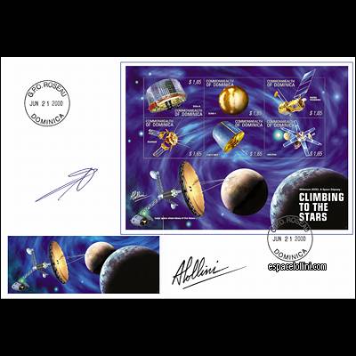 Télescope orbital du futur, sujet de la page 4 de couverture du catalogue Lollini actualisé, réalisé en images de synthese grâce à nos logiciels en 3D. 2 FDCs signés des auteurs. Informations valeurs :