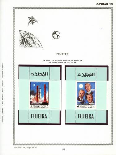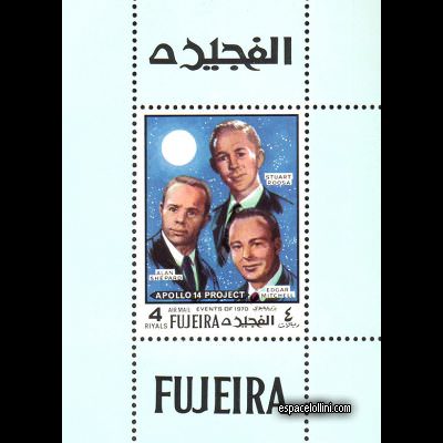 Tryckmetod: offset Beskrivning : Apollo 14 stamps 5000 FUJ 4/5 printed on little souvenir sheets. Information om värdena :