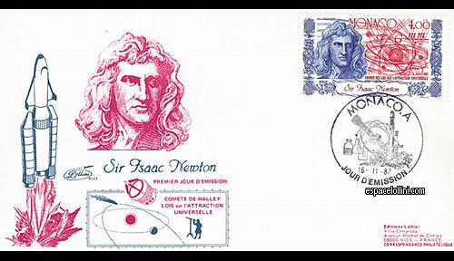 autographe?: non - noneBeskrivning : FDC from Monaco dedicated to Isaac Newton with a special post stamp dedicated to this event. Nyckelord : #Ariane, #ESA, #Kändis, #Komet, #LOLLINI (design), #Planet, #Raket, #Rymdfärja, #Solen, #Sond, #Stenar i skyn, #Vetenskapsmän, Artikel i en Katalog. Senast ändrad: 22/11/2015 @ 11h46