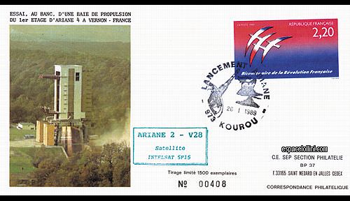 Upplaga : 1500 exemplar Händelsetyp : Test Startplatta / Plats : CSG Kourou (Franska Guyana) ESA Bemannad / Robotisk Mission : Robotisk Uppdragsmål/Typ : Telekommunikation