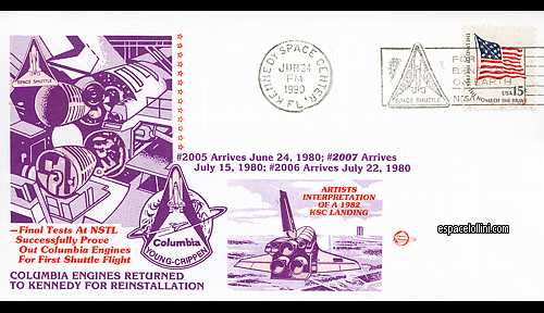Descriptif : KSC. Fin des tests et arrivée du moteur principal n° 2005 au KSC pour montage sur la navette Columbia.