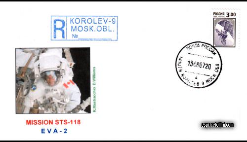 autographe?: non - noneDescriptif : Oblitération et griffe "Recommandé" de Korolev-9. EVA 2 de STS-118 depuis Quest (Richard Mastracchio, Dave Williams), remplacement d`un actionneur gyroscopique en panne (CMG 3) sur Z1. Mot(s)-clé : #Astronaute, #Cosmonaute, #Station spatiale, REVUE DE L’ESPACE : 11 - 2007 Dernière modification: 20/11/2016 @ 22h28