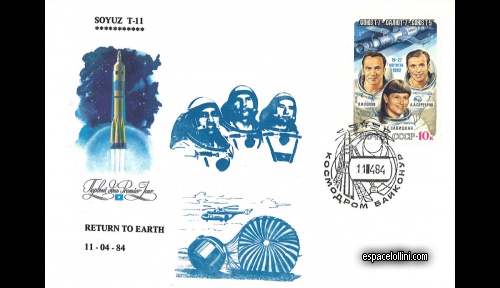 Stämpeldatum: 11 Avril 1984 Händelsetyp : Återkomst Startplatta / Plats : Bajkonur (KAZ) Bemannad / Robotisk Mission : Bemannad Uppdragsmål/Typ : Liv i Rymden / Långvarig vistelse