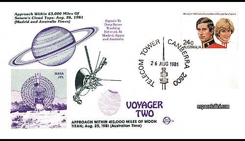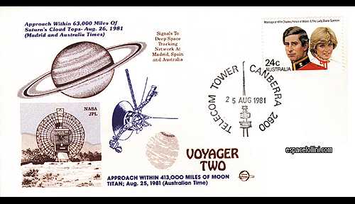 autographe?: non - noneDescription : 2 covers and approach to 63,000 miles of Saturn planet with Canberra post stamp. Keyword(s) : #Aerial, #Deep space, #Moon and probes, #NASA, #Planet, #Probe, #Satellite, This is OUTSIDE of a Space Revue. Last modified: 05/29/2015 @ 16h11