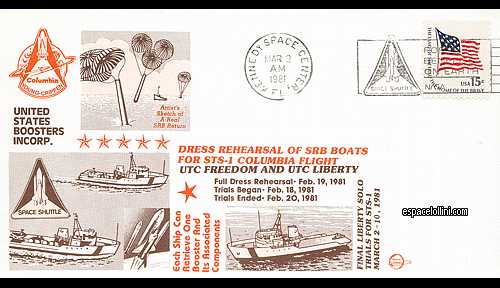 autographe?: non - noneDescription : 2 covers with Kennedy Space Center post stamps and UTC Freedom and UTC Liberty ship. Keyword(s) : #Boat, #Parachute, #Planet, #Rocket, #Space Shuttle, This is OUTSIDE of a Space Revue. Last modified: 10/07/2021 @ 15h00