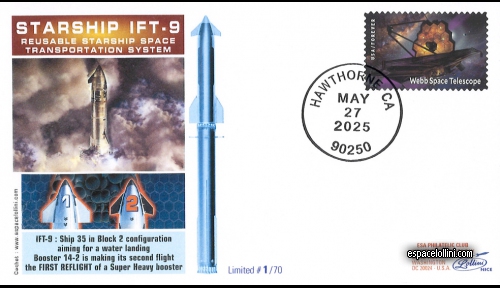 Beskrivning : STARSHIP IFT-9 Booster 14-2 Ship 35 in block 2 configuration. This is the first reflight of a flown booster (1st stage).